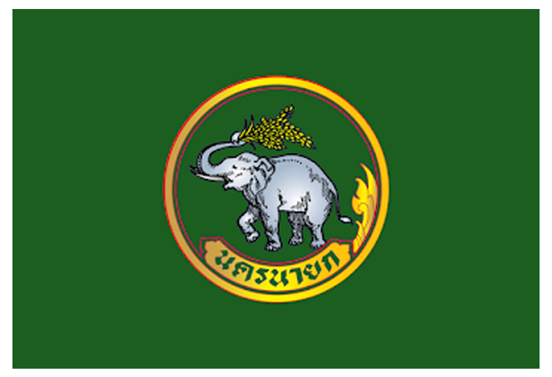 ธงพื้นสีเขียว กลางธงมีภาพตราประจำจังหวัดมีรูปช้างชูรวงข้าว เบื้องหลังเป็นลอมฟาง มีแถบแพรสีเหลือง มีข้อความว่า “นครนายก”