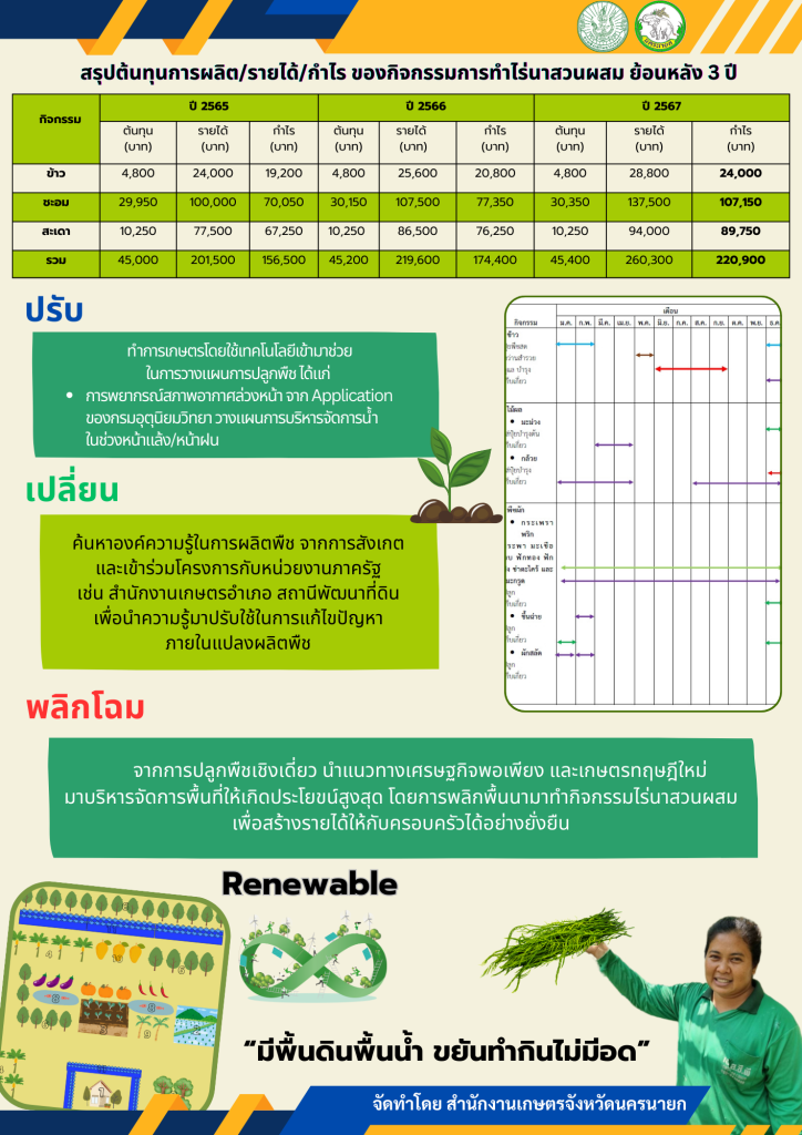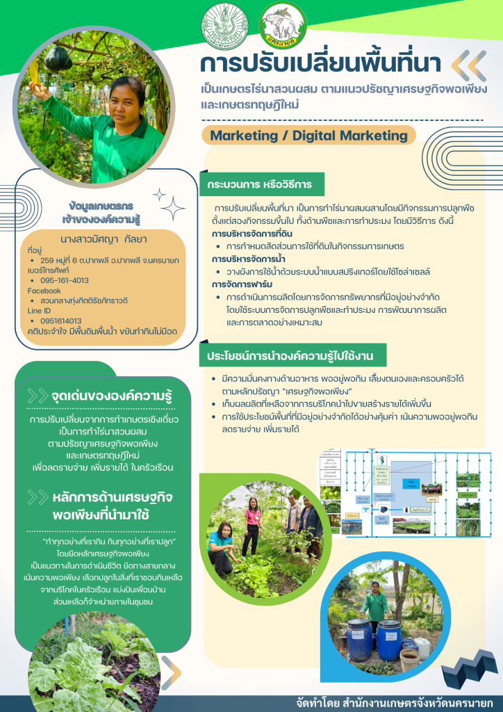 การจัดการความรู้ (Knowledge Management : KM) ประจำปี พ.ศ. 2568 องค์ความรู้ เรื่อง การปรับเปลี่ยนพื้นที่นาเป็นเกษตรไร่นาสวนผสม ตามแนวปรัชญาเศรษฐกิจพอเพียง และเกษตรทฤษฎีใหม่ เจ้าของความรู้ชื่อ นางสาวมัศญา กัลยา การจัดการความรู้ (KM) คุณมัศญา
