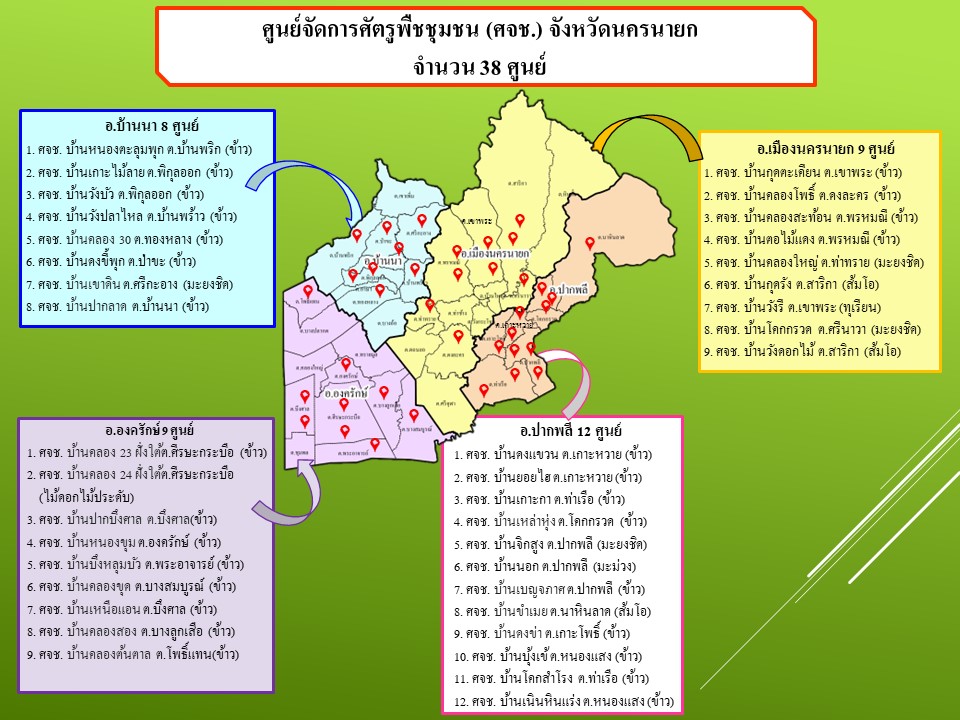 ทำเนียบศูนย์จัดการศัตรูพืชชุมชน (ศจช.) จังหวัดนครนายก